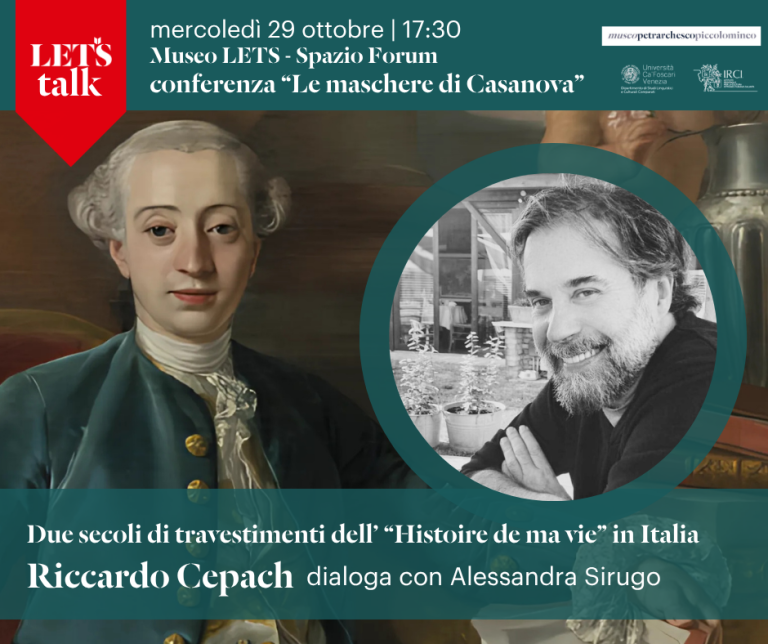 Mercoledì 29 ottobre, ore 17.30Spazio Forum – Museo LETS Nell’anno in cui ricorrono i 300 anni dalla nascita di Casanova (1725-1798) e il Museo petrarchesco piccolomineo propone il percorso